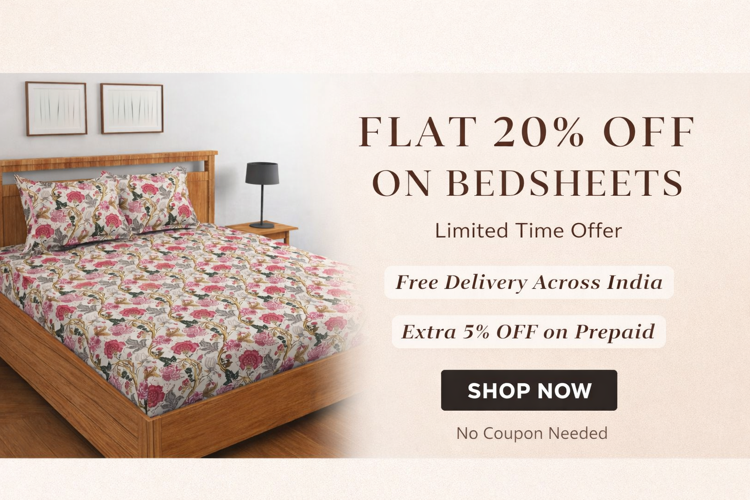 Amoha Decor Dual-Side Cotton Bedsheet for Queen Bed (90×100) – Flip & Refresh